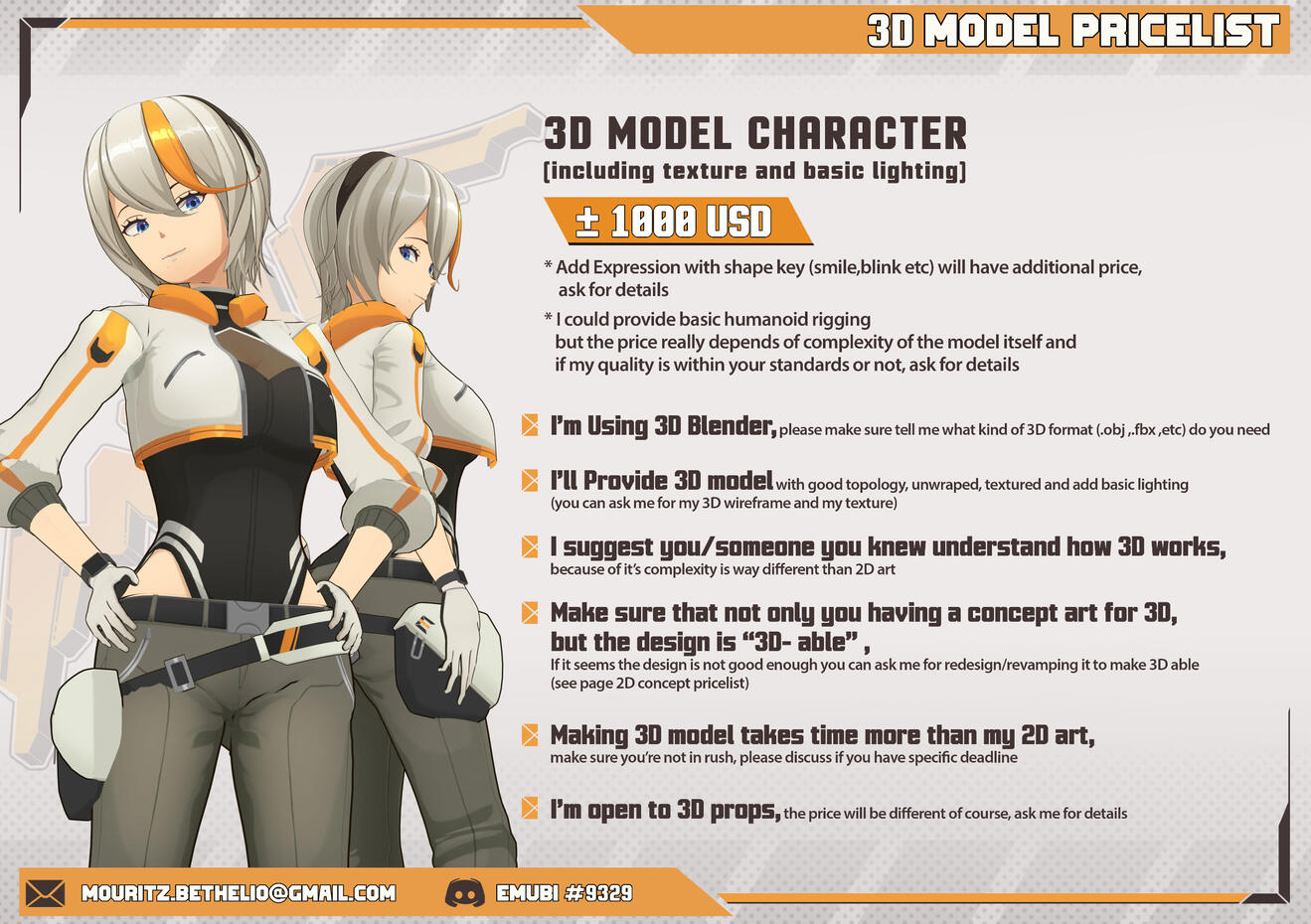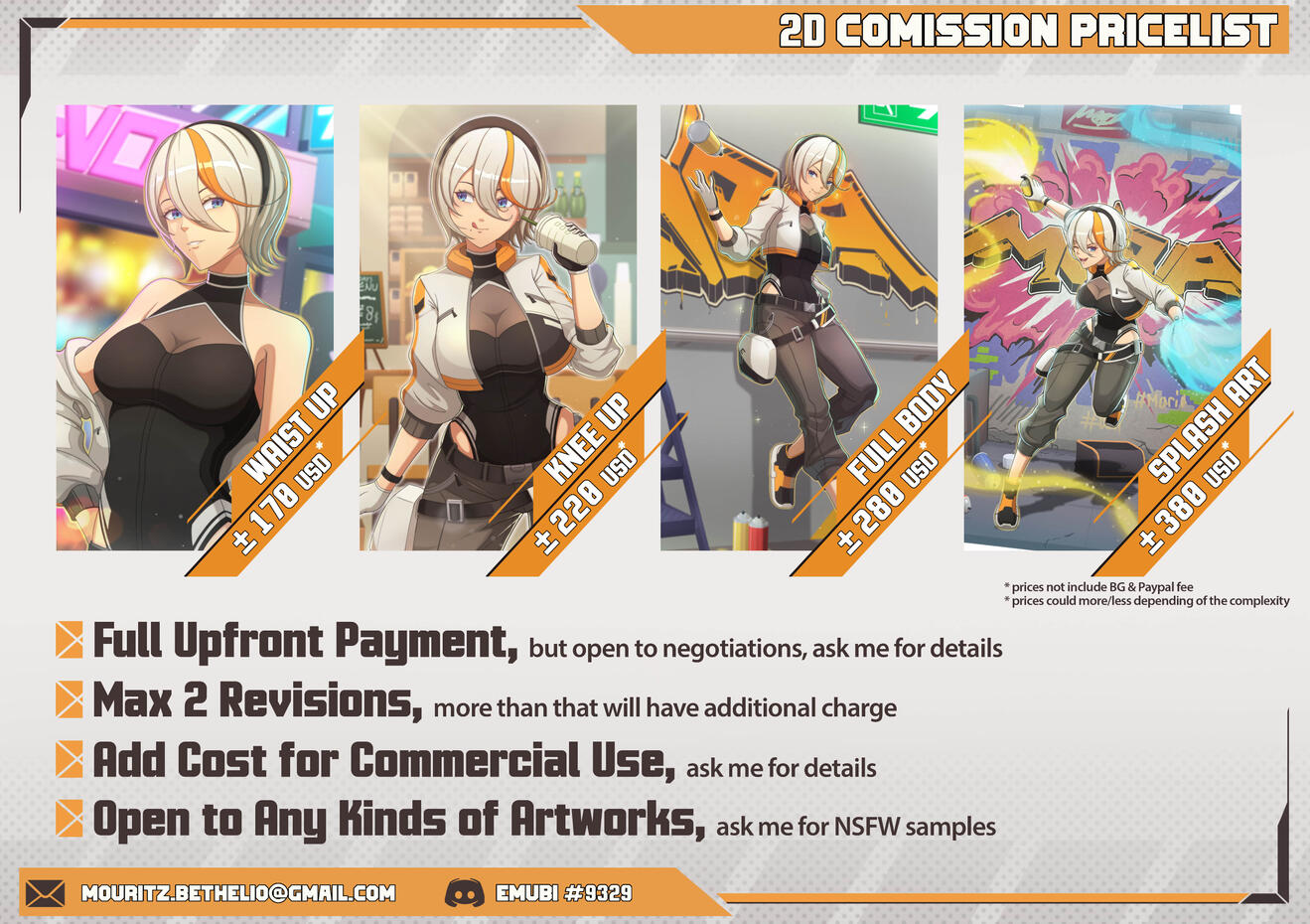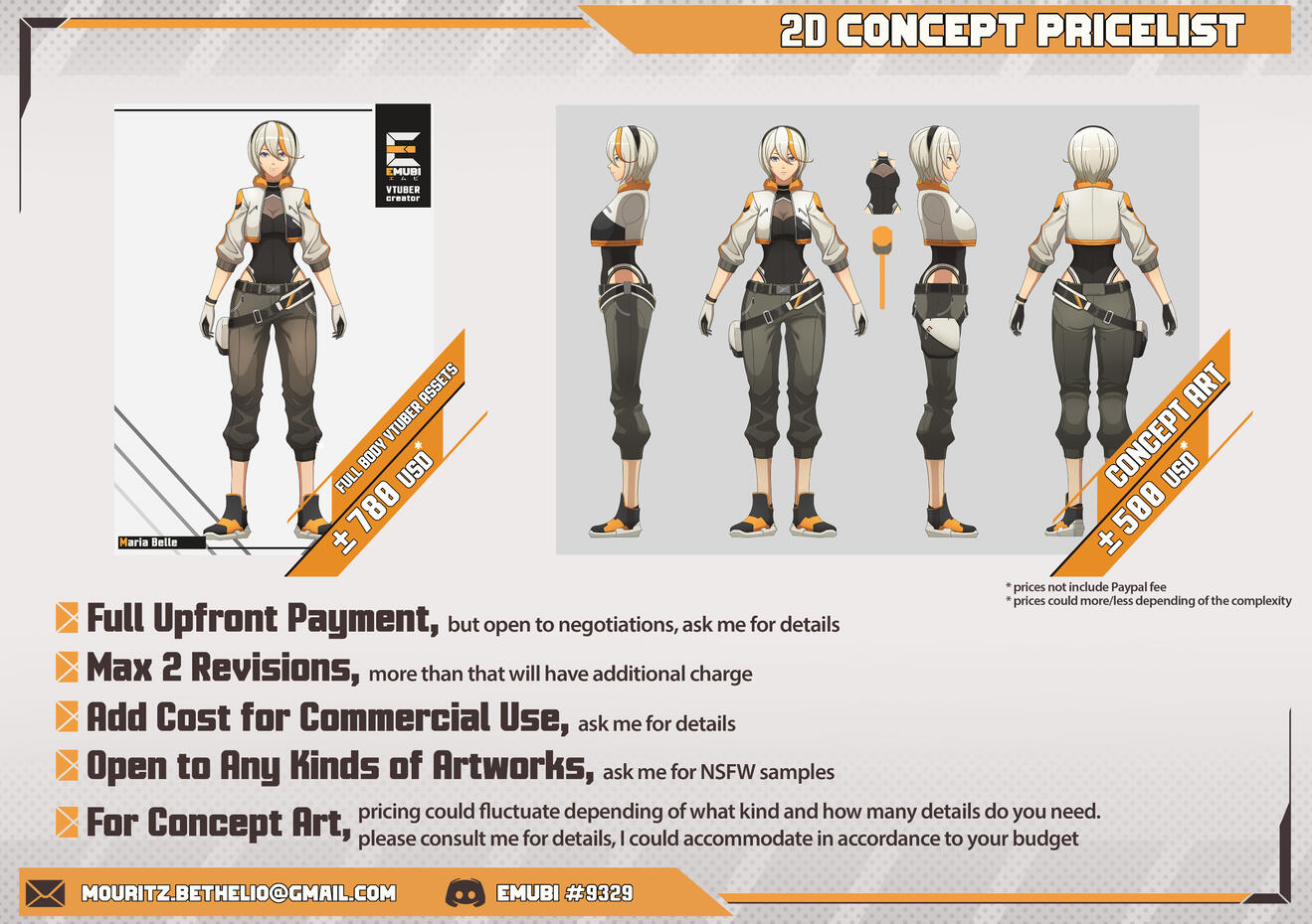 Contact me via Discord (for fast responds) and email me at [email protected] for further inquiry.